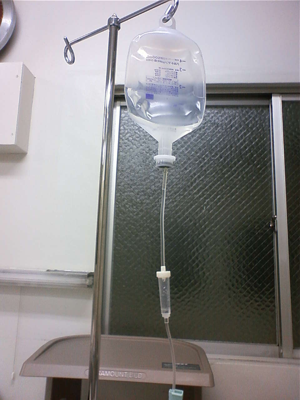最初は脱水で、病院へ行き、点滴を受けて帰ってきたが、